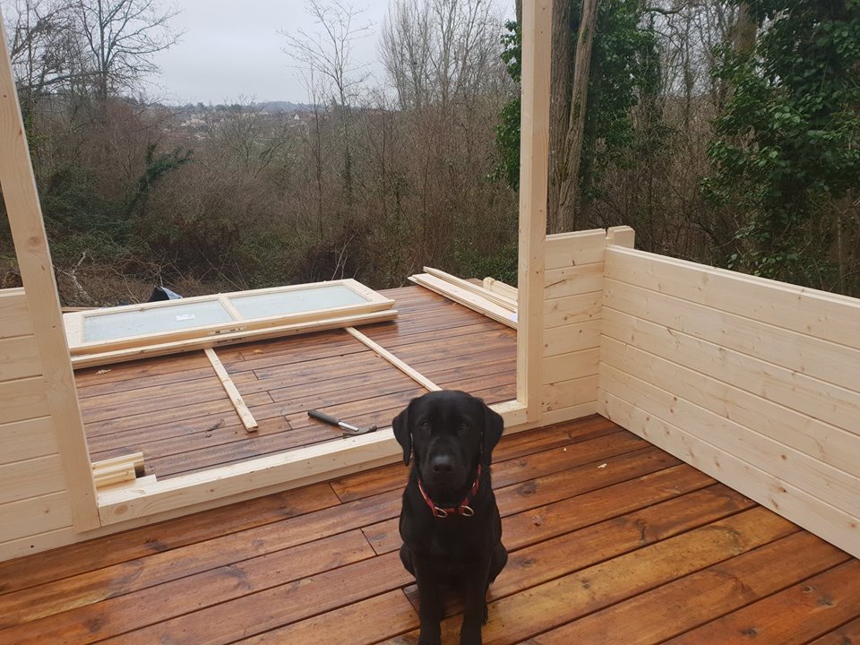 The only part that was physically too hard for the two of us to do as I was not strong enough to help Martin lift was the two apex bits of the roof – so Pierre our neighbour came over to help with these whilst I supervised!!